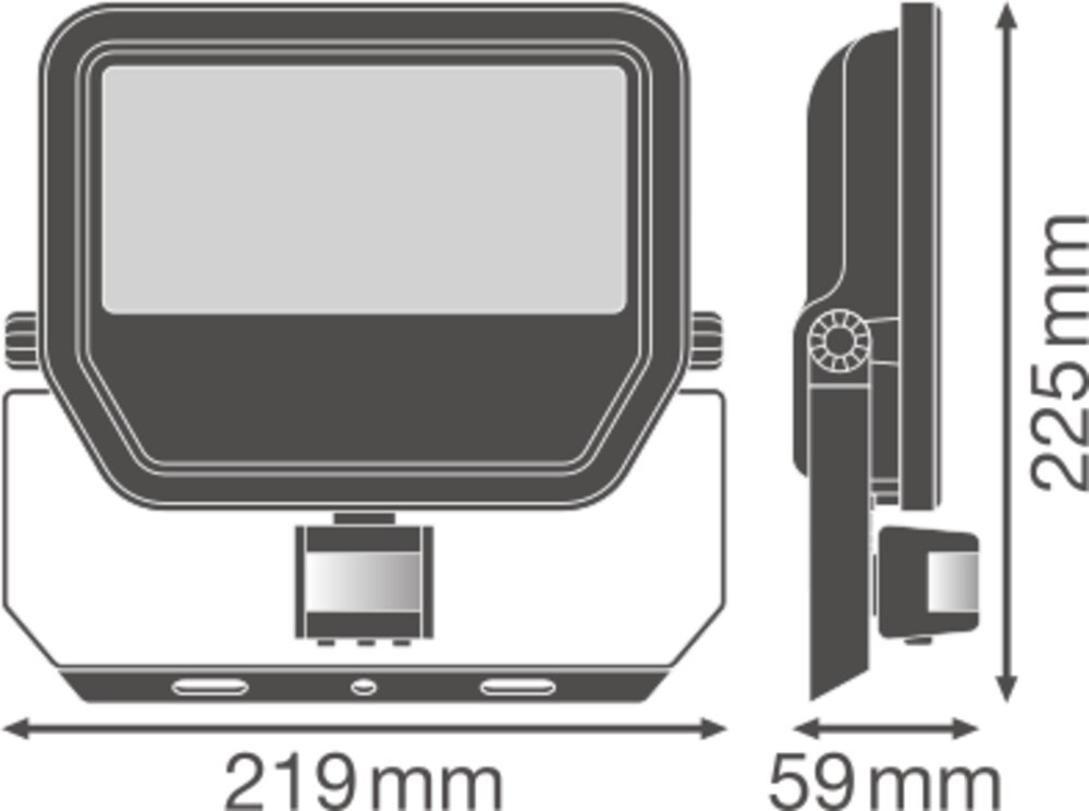 Floodlight with flexible motion and daylight sensor, up to 6000 lm light output. Product features: Flexible motion and daylight sensor. Sensor with 350° pan and 180° tilt. Reflector-based, symmetric light distribution with 100° x 100° beam angle. Integrated wide voltage driver, suitable for 100 - 277 V AC. Surge protection: up to 4 kV (L/ N-PE), 2 kV (L-N). Mounting bracket with 30° angle and wide rotation area. Breather membrane to optimize air exchange, without compromising IP protection. Pre-installed, flexible 1 m cable (H05RN-F), wrapped 3 x 1.0 mm² single wires. Product benefits: Bright, robust and durable. Demand optimized illumination due to flexible and programmable sensor. Easy adjustment of sensor range, daylight detection and hold time. Always-on override, activated via special mains switching pattern. Safe and very uniform illumination, due to frosted and tempered glass diffuser. No upper light output ratio (ULOR 0%) when mounted at 0° tilt. Energy savings of up to 90 % compared to halogen lamp floodlights. 5 years guarantee. Areas of application: Replacement for floodlights with halogen lamps. Outdoor use (IP65). Public areas. Building facades. Construction areas. Gardens, balconies and other outdoor areas.
