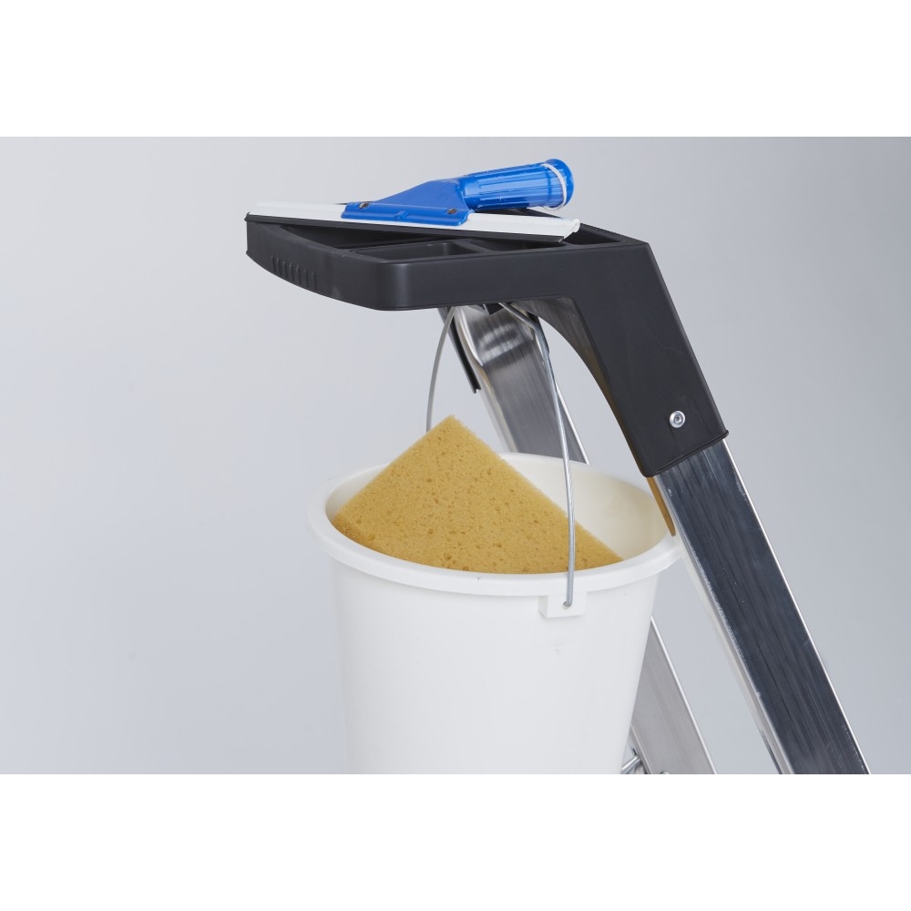 Šīs mājsaimniecības kāpnes nodrošina maksimālu drošību. Instrumentu kastē var ielikt rīkus vai materiālus, ar āķi spaiņa piekarināšanai.